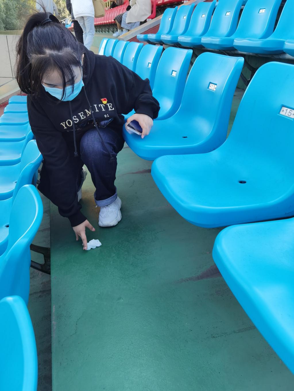本次活动重点是对操场看台座位以及场地内的垃圾进行分类清理,并辅助裁判员以及现场工作人员完成相应的活动准备。下午1点,党员同志准时来到活动场地,在距离运动会开始还有半个小时,党员同志对场地内的垃圾进行了清理,为运动员及观众提供了干净整洁的场地。运动会开始后,党员同志迅速转换身份,他们来到裁判员及运动员身边,力所能及地帮助裁判员开展工作,搀扶刚结束比赛的运动员。