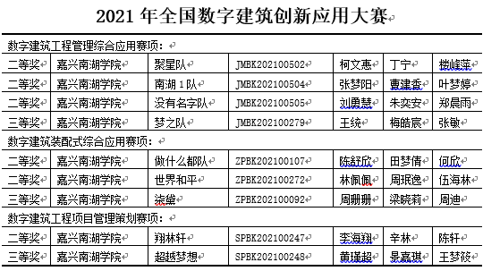 其中参加数字建筑工程管理综合应用赛项的12位同学均有资格获取《1+X建筑信息模型(BIM)职业技能等级中级证书》(中级)及《住房城乡建设领域 BIM 应用专业技能证书》(初级)。参与数字建筑装配式综合应用赛项获奖的9位选手均有资格申请《1+X装配式职业技能等级初级证书》科目1免试。