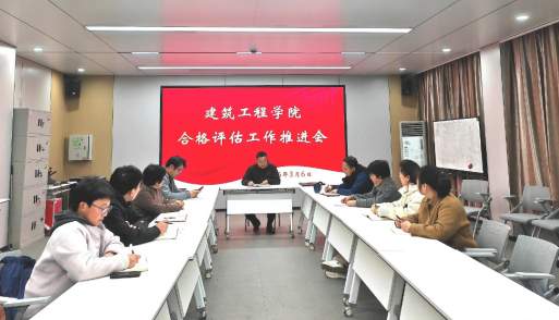 3月 6日下午,建筑工程学院在 109会议室召开合格评估推进工作会议。学院领导班子、各专业负责人(执行主任)、各部门负责人、学院督导组成员参加会议。