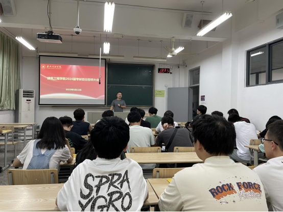 为了帮助2024届考研学子更全面的了解考研形势,熟悉国家相关政策,增强考研信心,营造良好考研氛围,更加高效科学的复习备考,从而提升考研成功率。2023年9月13日13:30建筑工程学院在教二A139举行2024届考研百日誓师大会。学院党委副书记王辉、学工办主任刘操、2020级辅导员胡龙腾老师、启航考研张老师以及2024届考研学生参会。本次誓师大会由学工办主任刘操主持。